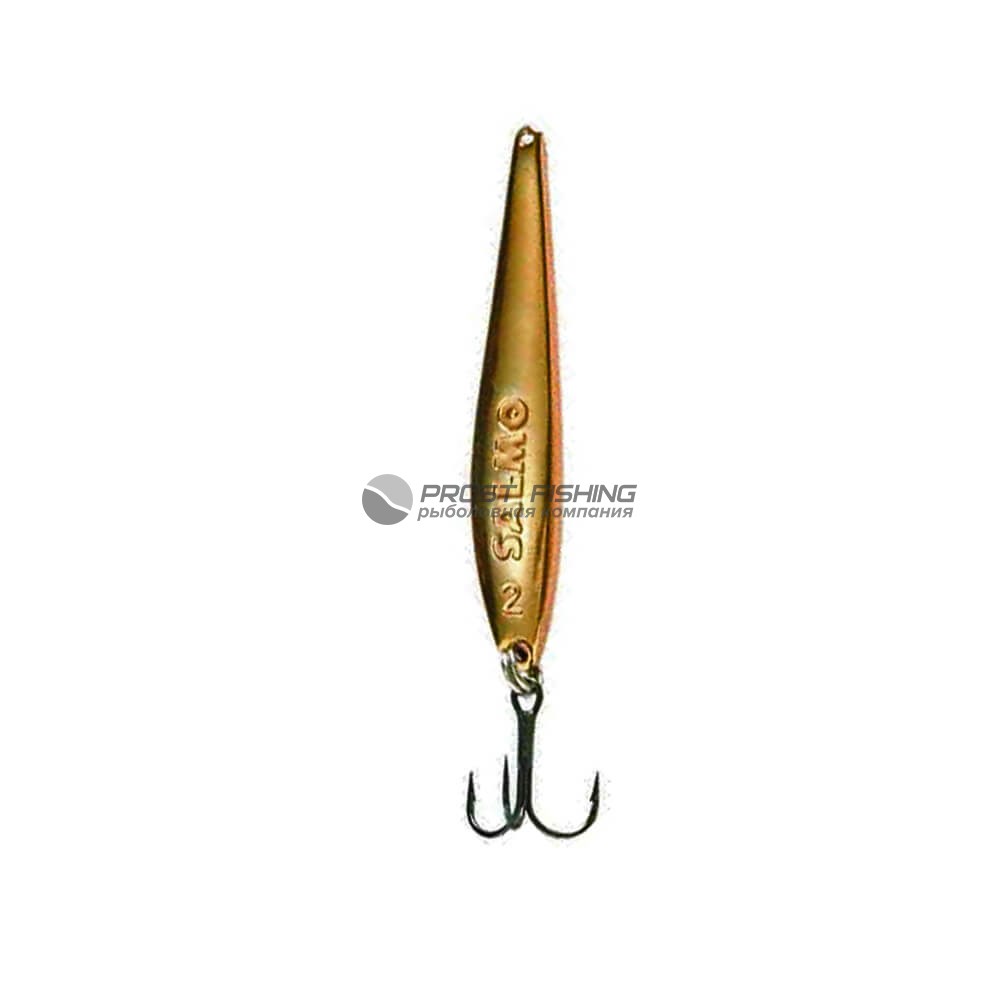 Вертикальная блесна Salmo пользуется большой популярностью у рыболовов. Технология изготовления этой блесны классическая: штамповка из латуни, холодная штамповка для получения оригинальной формы приманки, ручная полировка, нанесение гальванического и защитного покрытия. Блесна оснащена высококачественным японским тройником OWNER.