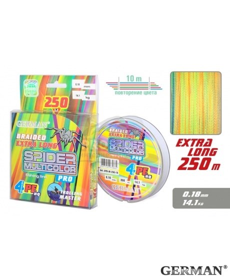 Шнур German Spider Multicolor x4 250м / 0,30мм / 29.9кг