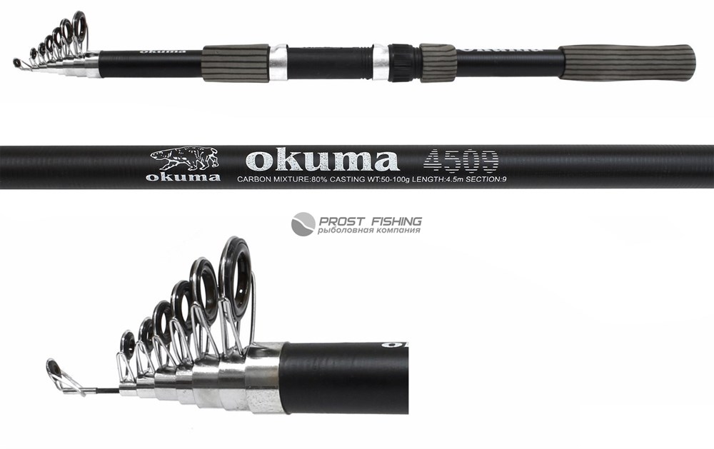 Спиннинг телескопический OKUMA 2,1м тест 30-60гр.