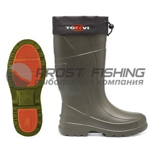 Их внешняя часть отлита из материала ЭВА, поэтому сапоги из ЭВА TORVI Универсал - легкие, водонепроницаемые, теплые и эластичные.